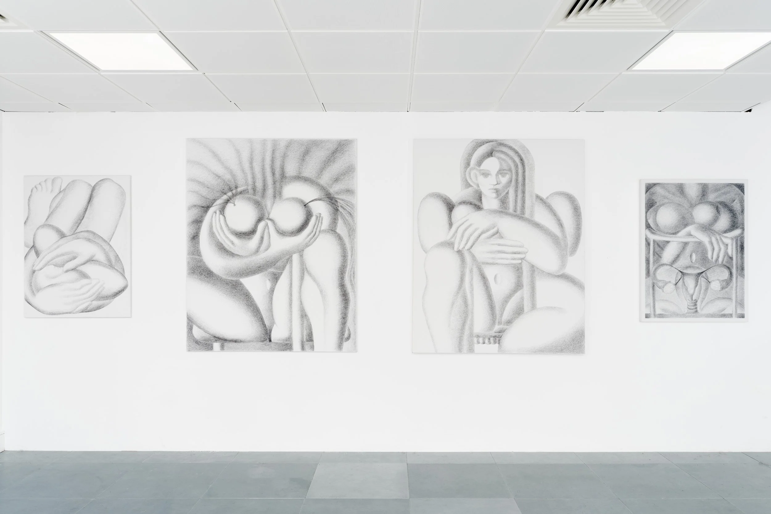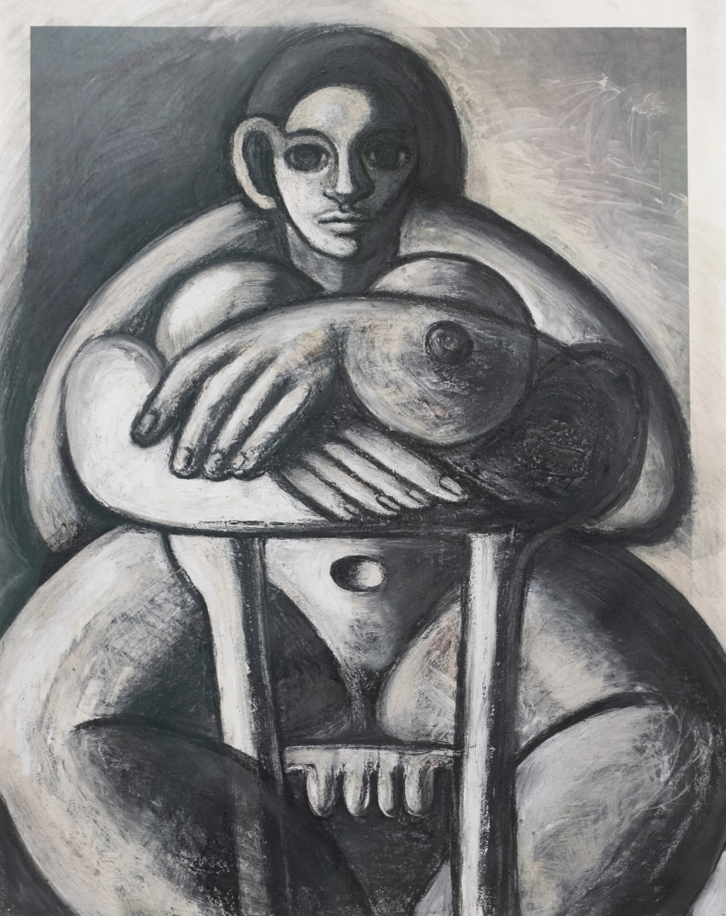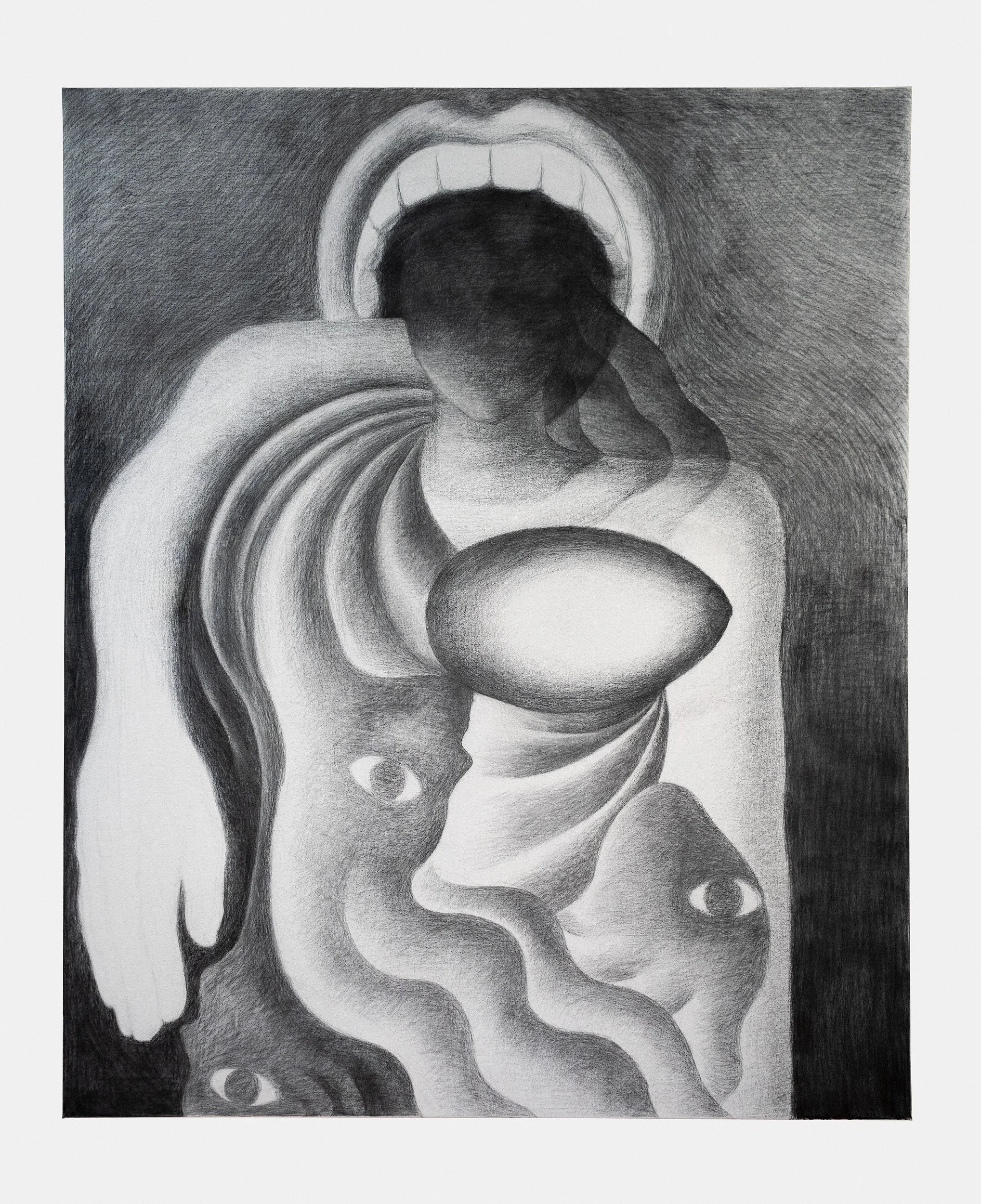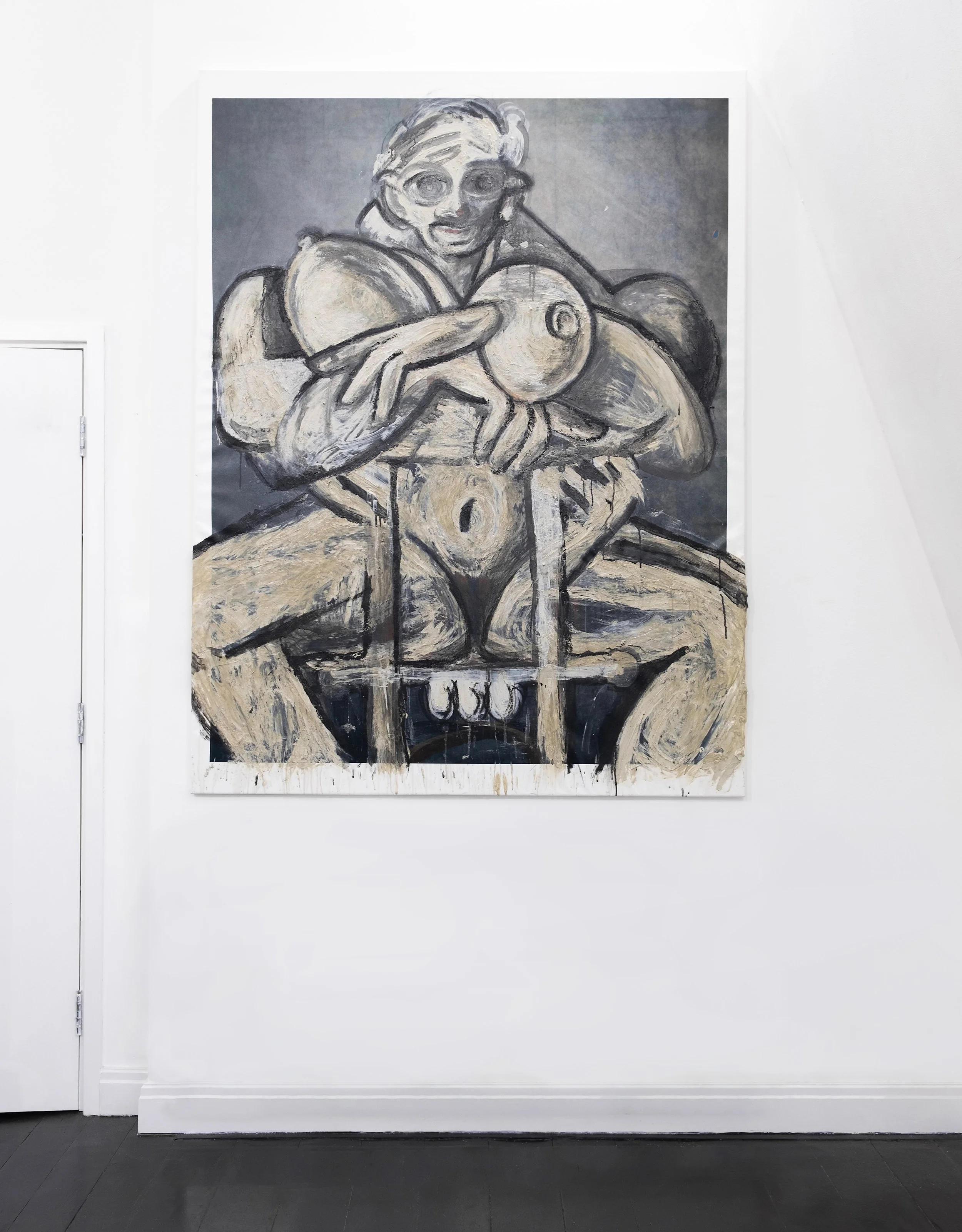 Oil, clay, wall filler, PVA, graphite on printed canvas